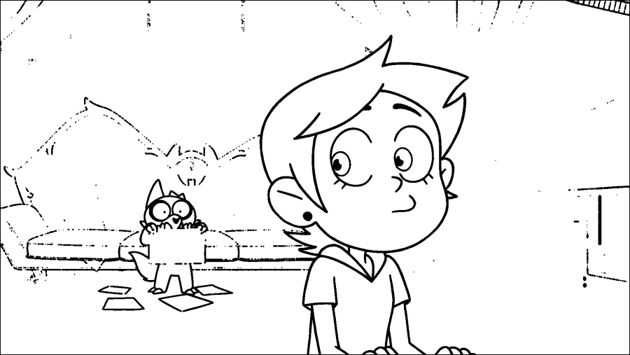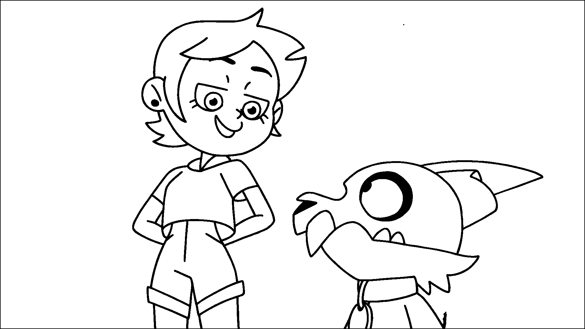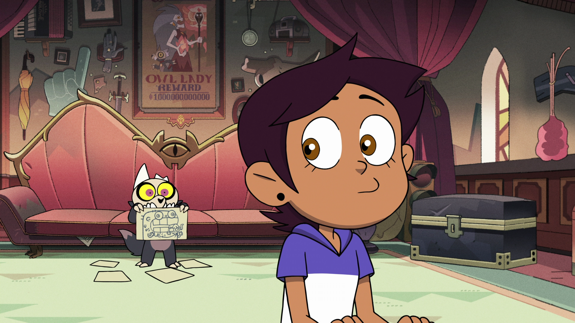 I'm going to walk through an example of how it does work on a frame from The Owl House's S01E04 episode The Intruder. Later on, I will go through some examples where it doesn't work, which are largely problems with my implementation, but may be very difficult to fix in all cases.